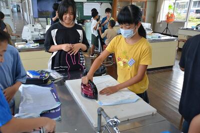 令和6年10月8日(火)、家庭科室では5年生がアイロンがけの学習をしていました。今、エプロンを製作しています。やけどをしないように、慎重にがんばっていました。