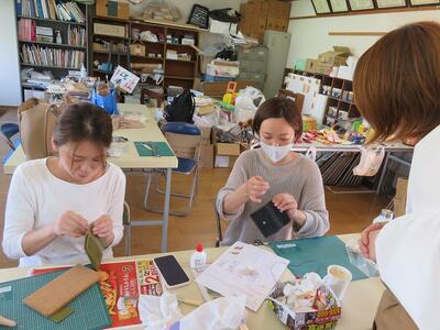 家庭教育学級が開催されました。今回は、レザークラフト教室でカードケースを作成しました。革に刻印を押し、縫い目を付け、縫い合わせる作業に苦戦しながらも楽しそうに活動していました。とても素敵なカードケースが完成しました。