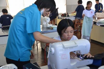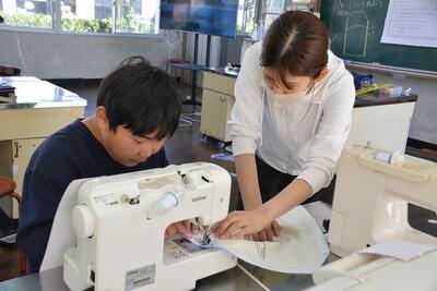 初めてのミシンを使った製作となるエプロンづくりです。今後の調理等でも使用していきます。みんな一生懸命に活動していました。仕上がりが楽しみですね。