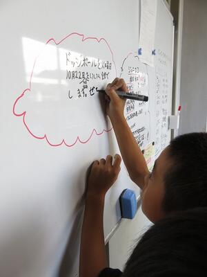 今日の昼休みに、校長室前のウェルビーイング・ボードへみんなのためになる活動を考え、記入している3年生児童がいました。前回の経験を生かしながら「こんな風にするといいんじゃないかなぁ?」と相談しながら記入していました。自分のために、そして人のために考え動く素敵な幸動ですね!