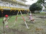 ロープに筒が通してあり、それをできるだけ高いところまで上がるか挑戦する遊具です。