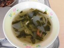 「あつあげのちゅうかに」は、たけのこや豚肉、しいたけ、はくさい、にらなど中華の食材がたっぷりでいい味が出ていました。そこに厚揚げも入っているので、栄養満点です。