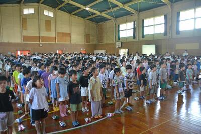 久しぶりに体育館に全校児童が集まって始業式を行いました。