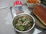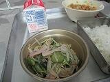 今日の給食は、「ミネストローネ」と「れんこんサラダ」でした。