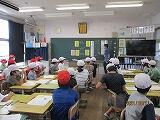 しかし、下の写真のように、外に出られない昼休みを生かして、6年生のリーダーが1年生の教室を回って、一生懸命応援の練習をしていました。1年生にとって小学校での初めての運動会。雨でも運動会を盛り上げようとする6年生の姿をどんなふうに見ているのかなと思いました。また、やがてこの1年生も6年したら、こんなお兄さん、お姉さんになるのかなと思うと感慨深いものがありました。