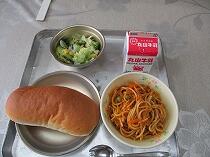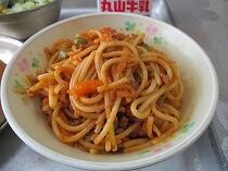 メインのおかずが「せんぎりだいこんいりミートスパゲッティ」でした。豚の挽肉がたっぷりと入り、ミートスパゲッティとしてしっかりとした味付けがしてあり、一緒に入っている千切り大根にもその旨味がしっかりと染み込んでいました。また、スパゲッティと千切り大根の合わせた歯ごたえも新鮮でした