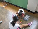 その後、「けん玉」「おじゃみ」「だるまおとし」などの昔の遊びを、実際に体験してみる活動を実施しました。
