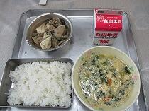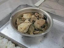 今日の給食は、「なつやさいのみそいため」と「かきたまじる」でした。