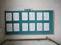 毎月、2学年ずつこの掲示板に絵や習字などの作品を掲示しています。職員室の前の廊下なので、いろいろが学年の子どもたちや先生、来校者の目にふれます。