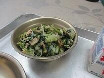 「こまつなサラダ」は、ツナがたくさん入っていて、小松菜がビタミンがいっぱいという感じでした。ほどよい酸味があり、疲れがとれて元気になるようなサラダでした。