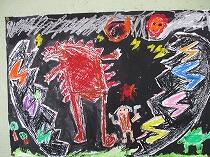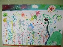 2年生も元気いっぱいののびのした感想画を描いていました。クレヨンだけでなく、絵の具を上手に使っているので、さすが2年生だと思いました。