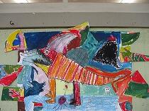 9月は、2年生と4年生の子どもたちの絵の作品が掲示されています。機会があって来校されるときは、ぜひ子どもたちの作品を見てあげてください。