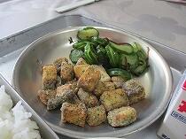 給食の添え野菜は加熱処理したものが出されますが、「こんぶあえ」は、こんぶが入ることできゅうりの味が引き立ち、いくらでも食べることができるような感じでした。
