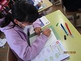 一年生は図工で、早速「運動会」の様子の絵を描いていました。