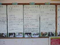 管理棟の放送室近くの廊下には、委員会を紹介した掲示物があります。また、校内には、それぞれの委員会が作成した掲示物も貼ってあります。