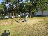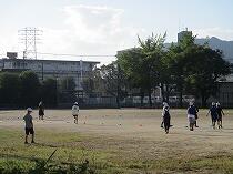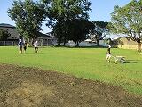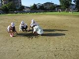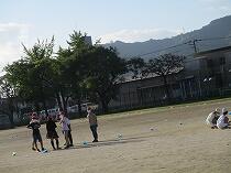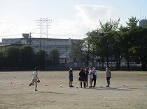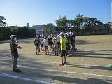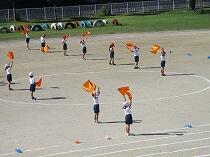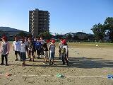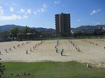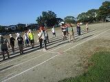 体育館で練習をするのと違い、秋のすがすがしさを感じながら、運動場いっぱいに広がって先生たちと、子どもたちは力を合わせて精一杯がんばっています。見ていてとても気持ちがいいですね。