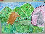 「読書感想画」は絵本などの挿絵の影響をうけやすいのですが、3年生はお話の内容を自分なりに想像して、描いています。お話を聞きながら、心の中にはきっとこんな素敵な光景が浮かんでいるのでしょうね!