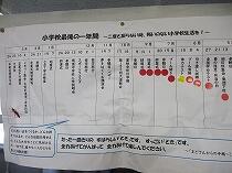 一つは、「二度と戻らない時、悔いのない小学校生活を」と副題が記入してある「小学校最後の1年間」という行事カレンダーです。終わった行事に大きなシールが貼ってあります。見てみると、もう半分くらい終わってきていることが分かります。きっとこれを見ている6年生は、残りの行事を大切にしたいという気持ちが湧いてくるだろうなと思いました。