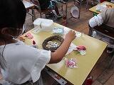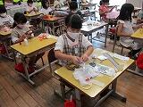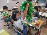 1年生は、以前、自分たちが育てたアサガオの蔓をリースにしていましたが、今日はその蔓だけだったリースにいろいろ楽しく飾り付けをしました。