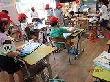 6年生が、5・6校時、図工の学習をしていました。延岡小は一部教科担任制を取り入れているので、図工は隣の学級の担任の先生が指導をしていました。