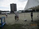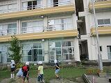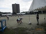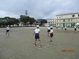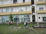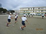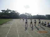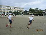 運動場は水たまりで、十分使えませんでしたが、5年生が自分たちでリレーの練習をしていました。