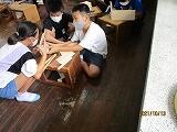 木工作品に、みんな楽しそうに取り組んでいます。釘を打つ人、着色をする人などみんな一生懸命です。協力しながらできているところがいいですね。