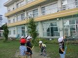 南側校舎の所には、楽しく肩を鍛えていくように工夫された遊具があります。