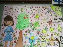 階段の4年生の掲示板に、4年生の絵が掲示されていました。