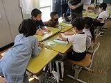 全体的な学習を終わって、学習したことを生かしてグループで話し合う学習です。ノートにメモをとって、みんな積極的に相談にのっていました。