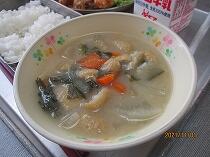 味噌汁と言えば、大根の具は定番ですね。延岡小の「だいこんのみそしる」は、他の野菜もたっぷり入って栄養満点です。