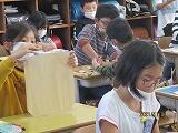 絵の具で、板にきれいな絵を描いたり、角をサンドペーパーで磨いたり、それぞれみんな真剣に取り組んでいます。