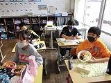今日は、この前ご紹介したように、家庭科の時間に自分たちで工夫した献立を、実際に調理してお弁当にして昼の給食の時間に食べました。