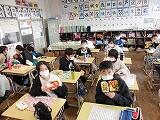 昨年度、5年生の初めての家庭科の時は新型コロナウイルス感染症のため調理実習らしいことはできていないので、みんなで調理実習をするのは小学校生活で初めてみたいなものです。栄養教諭の先生にも協力してもらいながら、本当に楽しそうにオリジナル弁当を作ることができました。