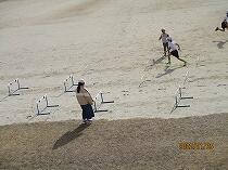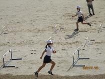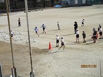 それでもやはり冬、寒さに負けずに3年生が密をさけて運動場で「小型ハードル」の学習をしていました。上手な子どもは、あまり高く跳ばないでリズミカルに跳んでスムーズに走っていました。