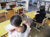 顔の部品をやはり作りながら、いろいろ動かしながら工夫をしていました。基本的には3つの学級同じ指導をしていますが、やはりそれぞれの学級で個性が出るところがおもしろいですね。