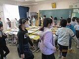 音楽に合わせて、向きを変えたり、動きをしたりする楽しい学習をしていました。下の教室の1年生に迷惑にならないように、大きな足音や振動が出ないように工夫していました。