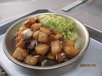 今日の給食は、地産地消の特別版で、宮崎県だけでなく延岡市内でも養殖の盛んな「かんぱちのあまずあえ」と「キャベツのごまあえ」、「すましじる」でした。