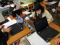 調べ残しについて調べるグループ、発表原稿を実際に読みながら内容の変更をするグループなど、取組は様々ですが、発表に向けて自分たちで主体的に取り組むことができていました。