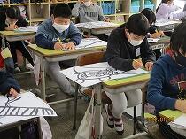 3年生の別の学級では、図工のステンシル版画に取り組んでいました。
