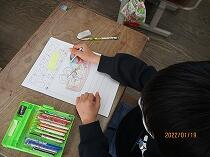 下書きが終わって、いよいよカッターを使って切り取りに入っていました。少しこわごわカッターを使っていましたが、道具をけがをしないように使う意識の表れだと思います。