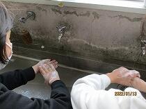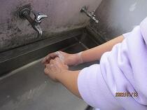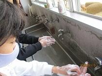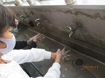 ※ 写真は、ていねいに手を洗う4年生です。とても上手ですね!