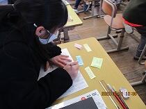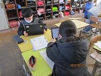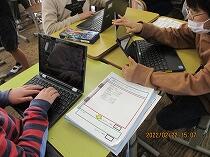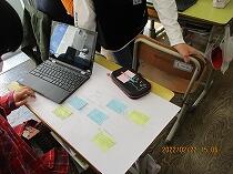 こちらの学級もインターネットを使って調べ学習に取り組んでいました。いろいろなサイトから、グループで話し合いながら、必要な情報をカードにしっかりと記録していました。