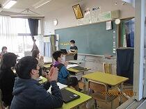3年生の別の学級では国語「わたしの学校じまん」で、グループ学習の形態を取りながら、最初はしっかりと担任の先生と学習を進めてポイントをしっかりと押さえていました。その時は、先生と一緒に考えた板書を、この学級もノートに一生懸命とっていました。