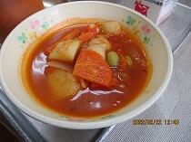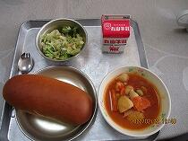 今日の給食は、「ミネストローネ」と「チーズアーモンドサラダ」でした。