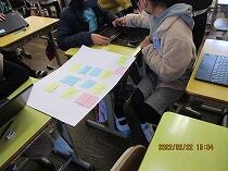 インターネットで調べて終わりではなく、付箋を使って話合い学習を効果的に進めているところがいいですね。