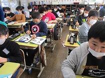 この学級の特徴は、しいんとしてみんなが集中して、一画一画にていねいに取り組んでいるところです。どんな作品になるかな!楽しみです。