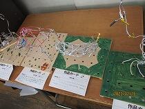 5年生の教室には、図工で作成したオブジェが飾ってあります。いろいろな針金を使って思い思いの作品を仕上げています。
