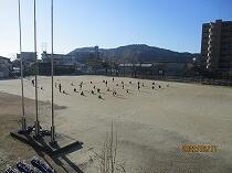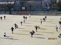 でも、4年生の子どもたちは元気いっぱい運動場で体育に取り組んでいました。