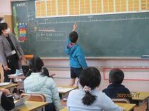 今日は、量感の分かる資料や数直線を使いながら、大きな数の順序数としての位置や量的な感覚をつかませながら授業を進めていました。