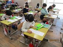 今日は、5年生の一つの学級が習字に取り組んでいました。どの学級も習字には、まじめに一生懸命取り組んでいますが、それぞれの学年・学級でそれぞれ個性があります。